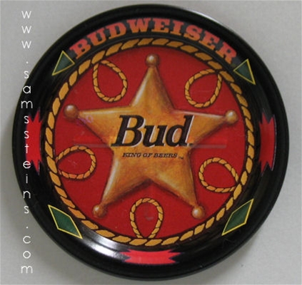 NEW OLD STOCK: Set of six different metal coasters featuring different Budweiser Western themes. 3 1/2" diameter. Copyright dated 1996.