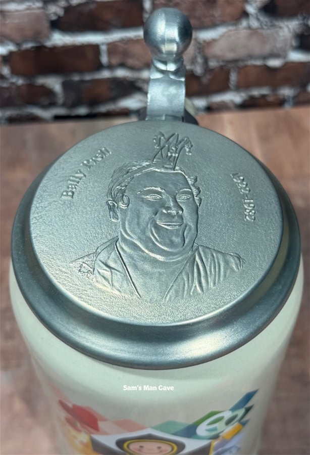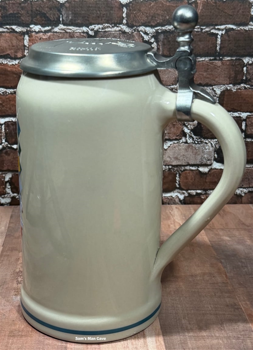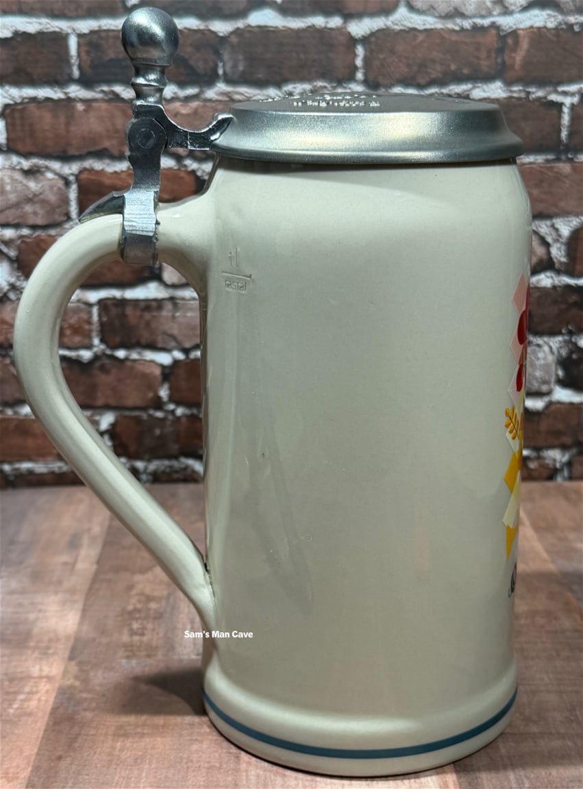 NEW: 8 3/4" tall, one liter ceramic stein featuring the official artwork for the 2024 Munich Oktoberfest. Each stein is dated on the front with a copy of the artist's signature on the bottom. Comes with certificate of authenticity. Made by Rastal of Germany.