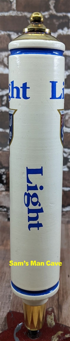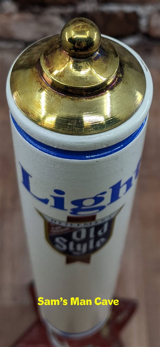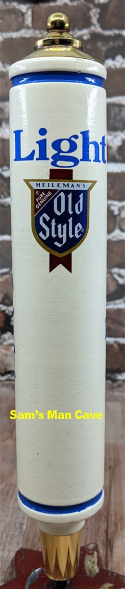 VINTAGE: 9 1/4" tall cylindrical wood tap handle with the same Old Style Light logo on each side, with LIGHT on opposite side. This is an older, original item and does have some marks, please examine the photos carefully.